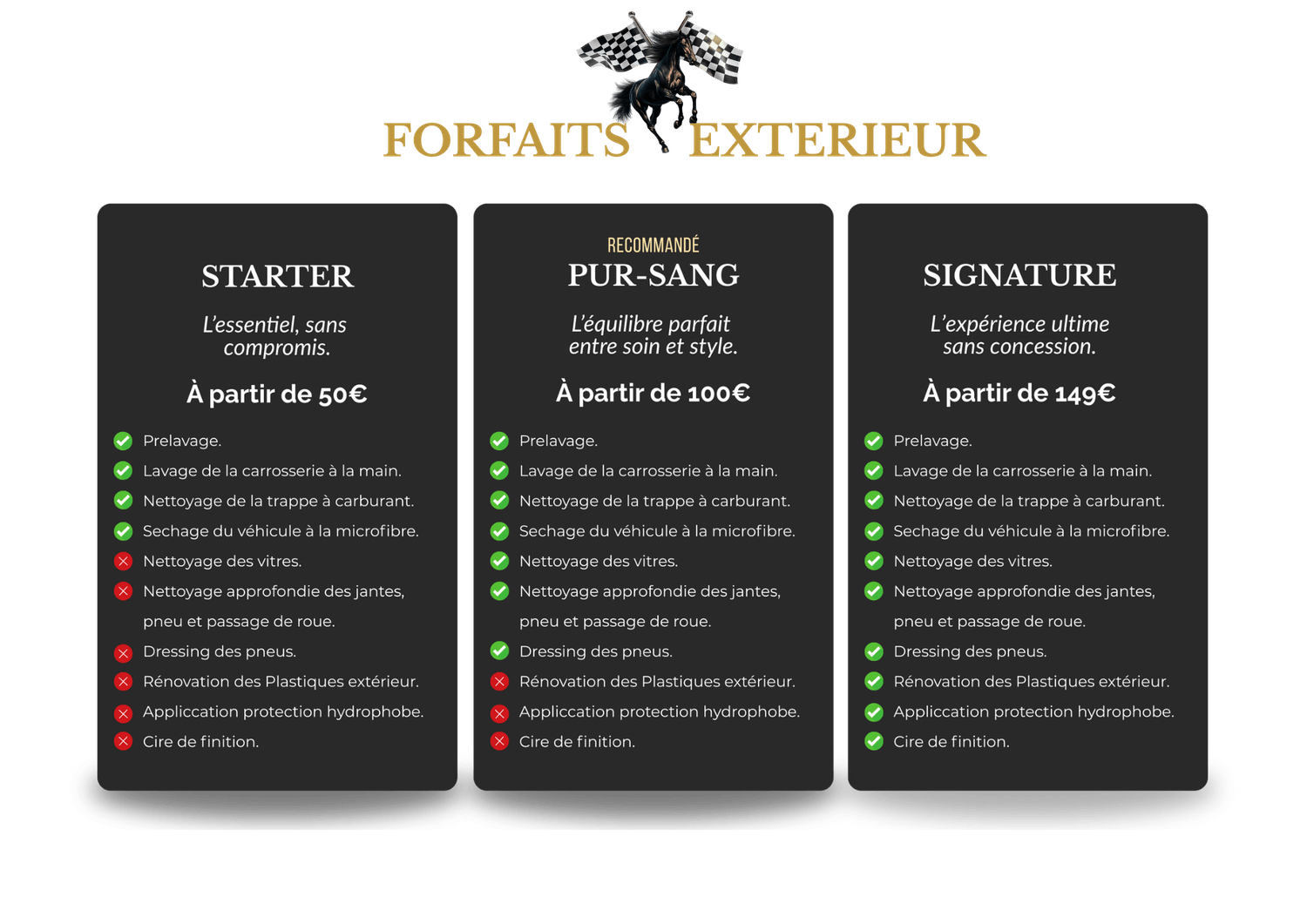 Chaque voiture mérite un soin à la hauteur de ce qu’elle représente. Nos forfaits ont été conçus comme des expériences, pour révéler l’éclat et le caractère unique de votre véhicule.
